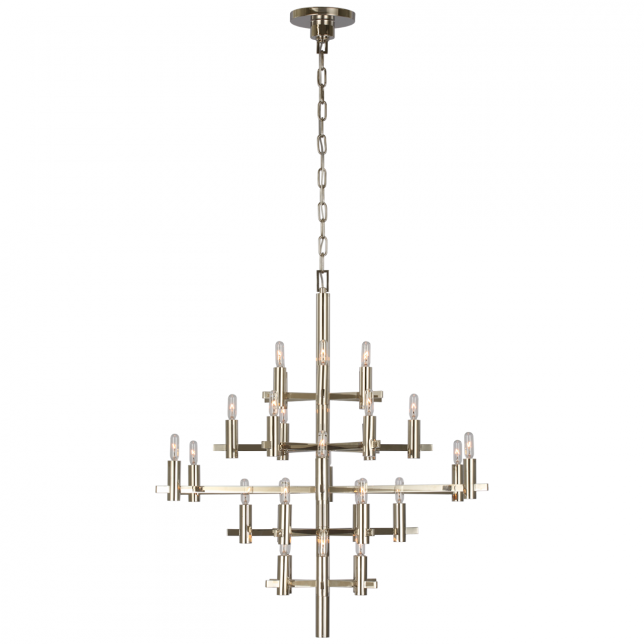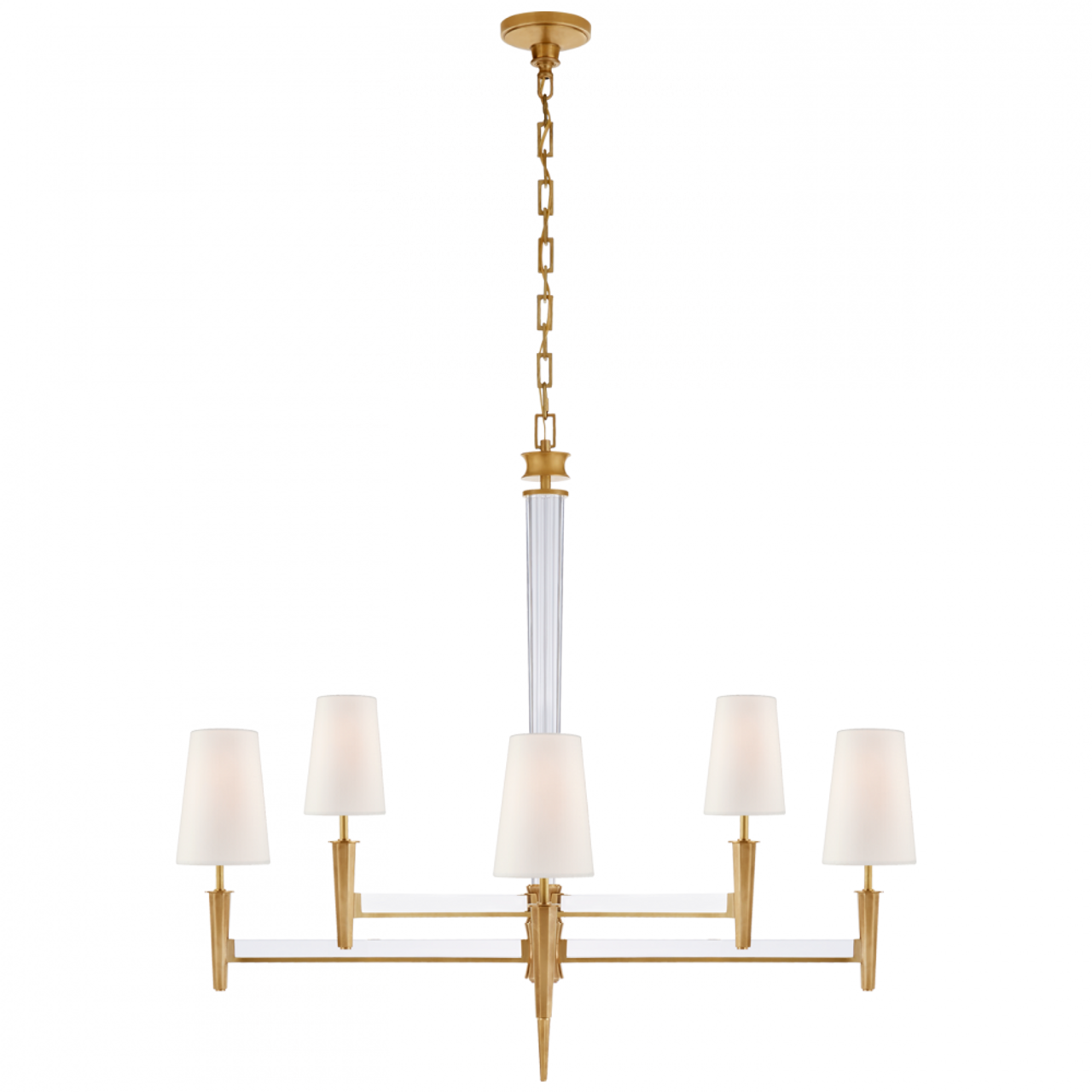 Elevate your space with the Lyra Two Tier Chandelier by Visual Comfort Signature, designed by the renowned Thomas O'Brien. This exquisite piece features elegantly layered linen shades that cast a warm, inviting glow, adding a touch of sophistication to any room. With its timeless design and impeccable craftsmanship, the Lyra Chandelier is the perfect blend of modern elegance and classic charm.