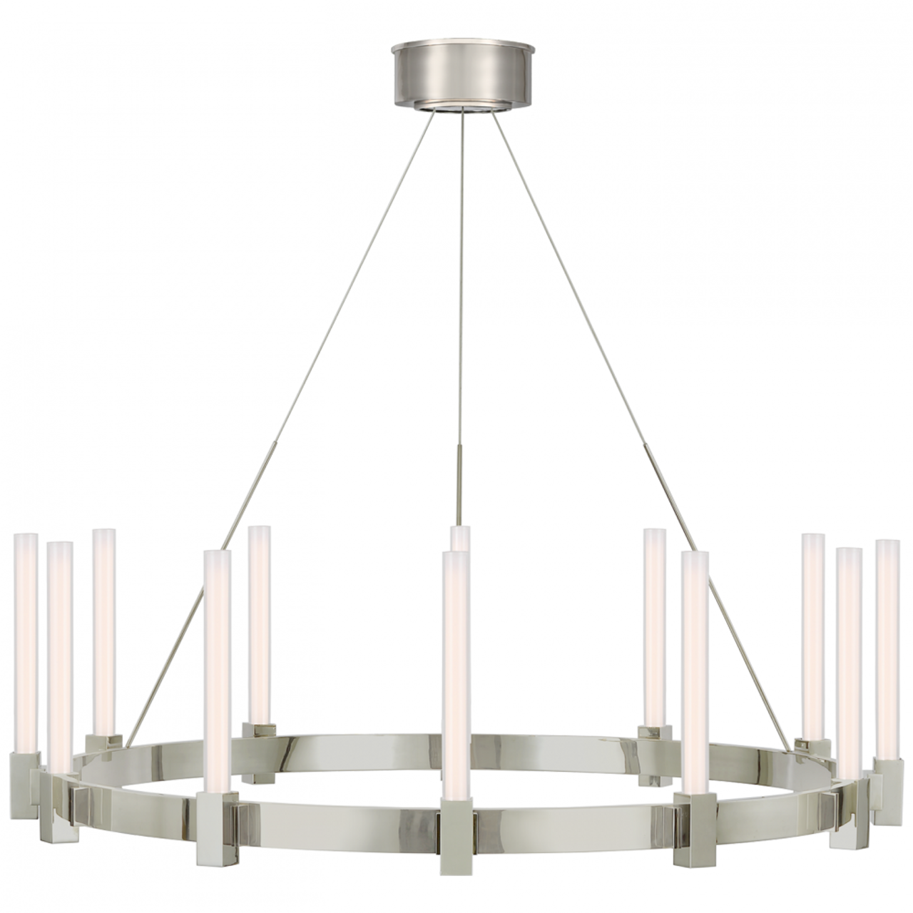 Embrace the allure of multi-light brilliance with the Mafra LED Chandelier by Visual Comfort Signature. Crafted from sleek steel, the design features a graceful circular frame reminiscent of a carousel, with cylindrical light enclosures rising vertically from the structure. This encircling arrangement allows the bulbs to radiate light in all directions, filling your space with a warm, inviting glow perfect for any gathering.