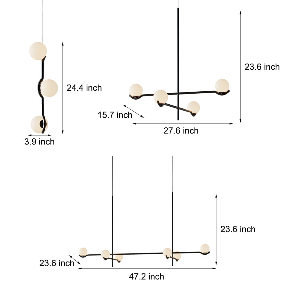 • Featuring 3/4/6 glass shades extending gracefully from the central pole, this fixture seamlessly merges Nordic, modern, and minimalist styles, complementing a variety of decor schemes. Even when not illuminated, this pendant light serves as a chic decor piece, adding a touch of sophistication to any space.