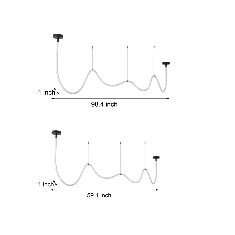 • This LED silicone rope pendant lighting is made from quality copper and soft silicone rope. Its stylish matte black finish adds a touch of understated luxury to any room, enhancing the overall aesthetic. The creative silicone rope adds a unique style to traditional chandeliers, providing design flexibility. There are two lengths of 59.05''/98.42'' for you to choose from, which can meet the decoration and lighting needs of different spaces and add a touch of personality to your space. With a 3-step dimming feature, you can effortlessly adjust the color temperature to suit your mood and ambiance. This LED pendant light is suitable for various home scenes, including the living room, dining room, or bedroom.