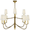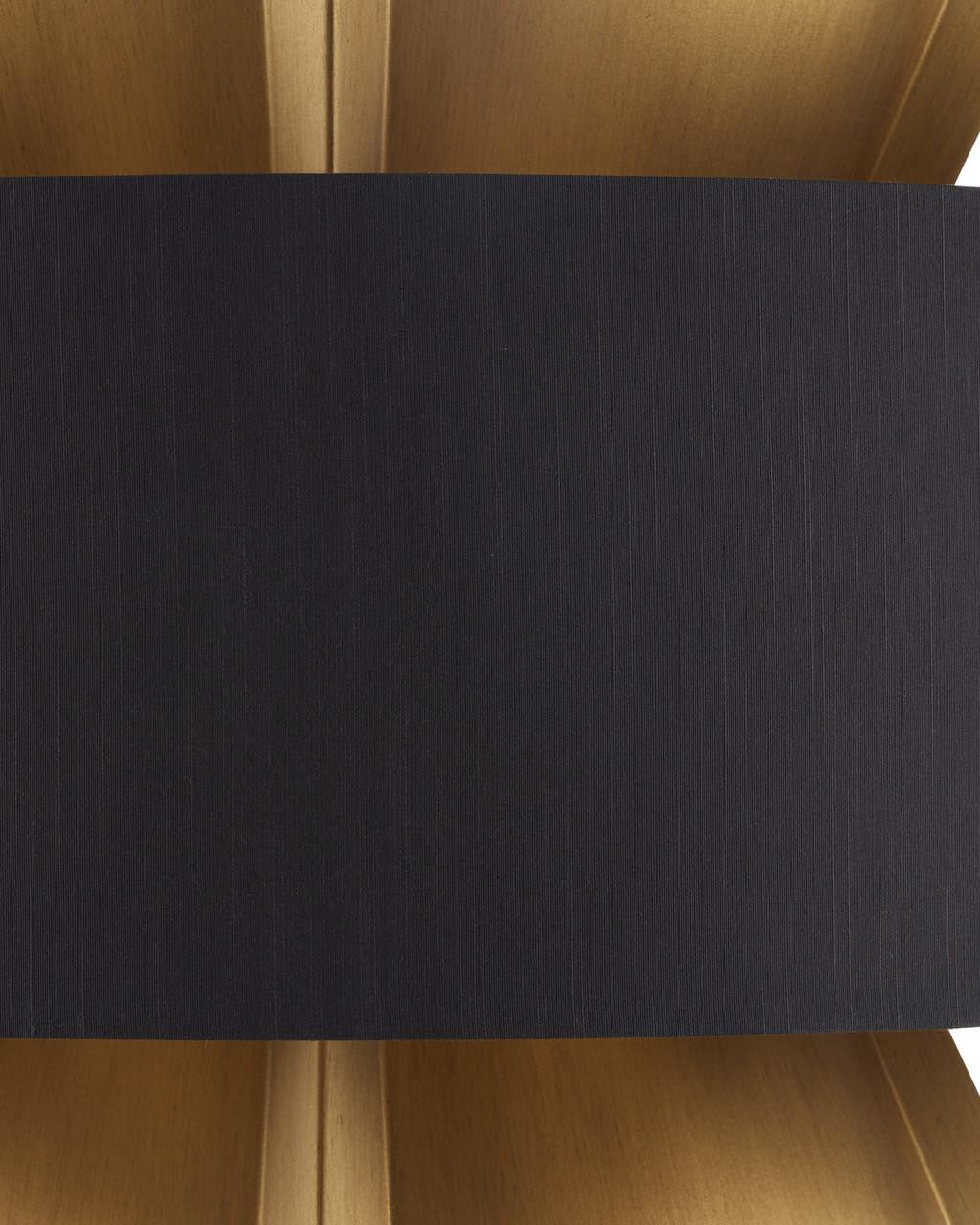 The Oxenwood Chandelier exhibits masculine attributes that will make it a powerful statement piece in a room, as well as a contrasting one. The black shantung shade that wraps artfully around the conjoined fluted metal shapes has a silver lining. Juxtaposed with the brass finish on the wrought-iron, the illumination reflects from both warm and cool surfaces to make the gold and black chandelier gleam. This fixture will shine in transitional, traditional, mid-century modern, and contemporary interiors. Adjustable from 23" to 65" with use of included chain/rod kit/cable. If your space calls for a longer drop, additional chain/rods/cable is available for purchase.