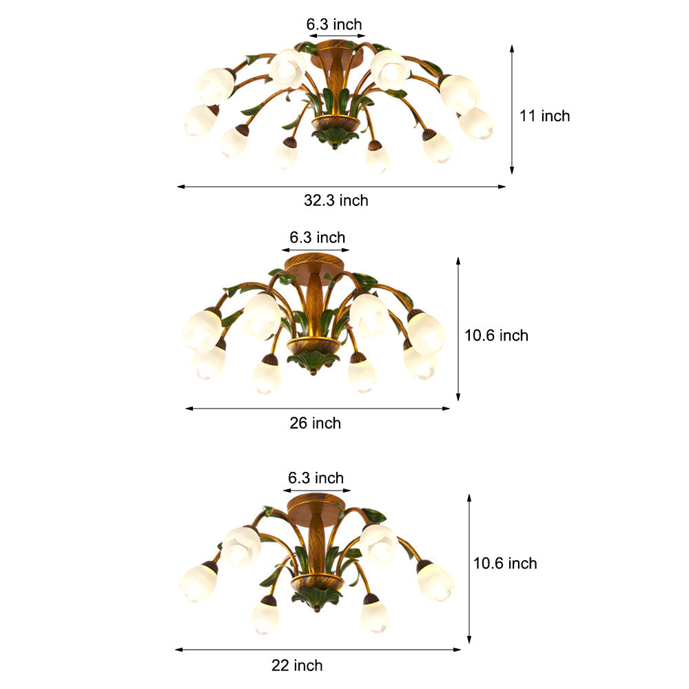 • And the combination of rustic design and flowers elements allows this ceiling lamp to bring nostalgic charm to any room. You can use it in bedrooms, dining rooms, living rooms, study rooms and other spaces to create a quiet and peaceful environment for you.