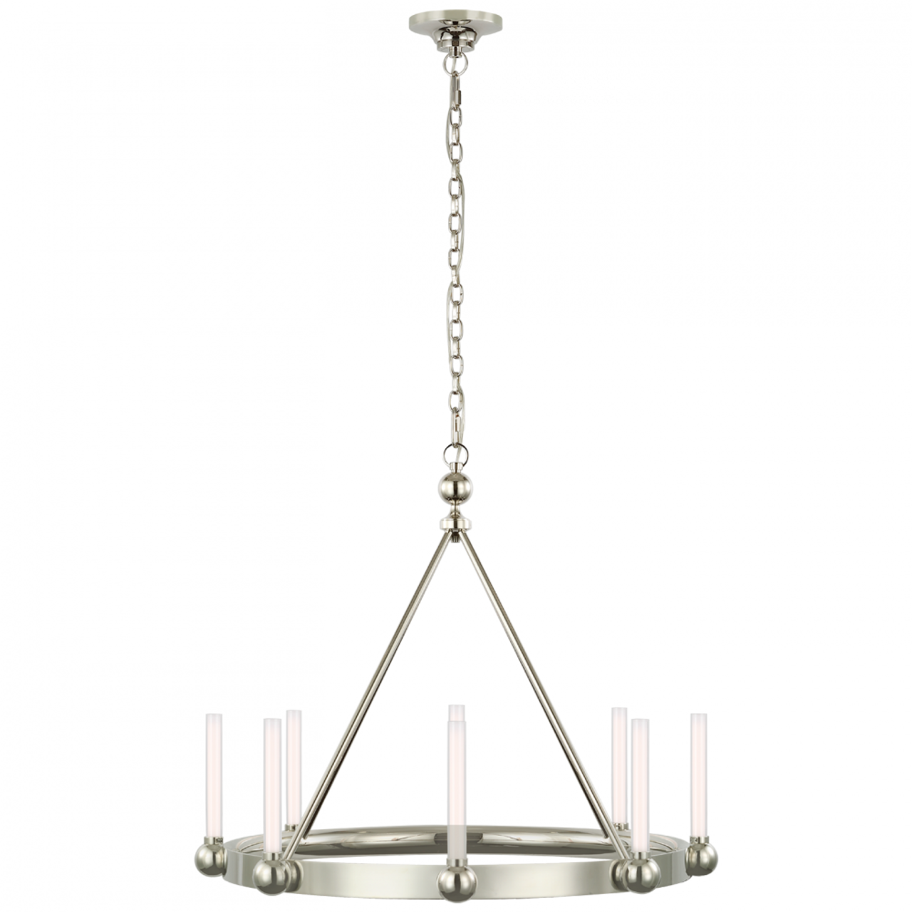 With the Piaf, Thomas O'Brien explores clean shapes with an airy feel. Natural steel bars intersect with wooden and metal hubs accented by simple candles and white conical shades. The juxtaposition of classic, casual forms with modern details will lend itself effortlessly to a diverse range of interior spaces.