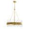 Individual iron rods are welded together and hand-finished with gold leaf to create this stunning oval-shaped chandelier. The entire piece is leafed all the way up to the ceiling mount. Rustic yet undeniably elegant. Sheds so much light with tenstandard bulbs. Gold leaf Finish may vary. Damp-rated, although limited covered outdoor conditions may affect finish.