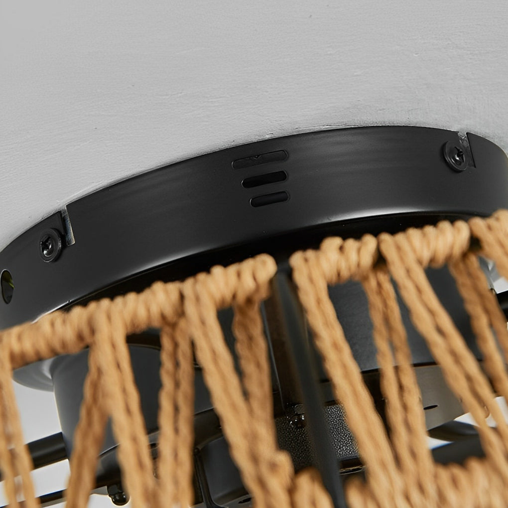 Creative Rattan Iron Timing Industrial Style Inverter Ceiling Fan Lamp