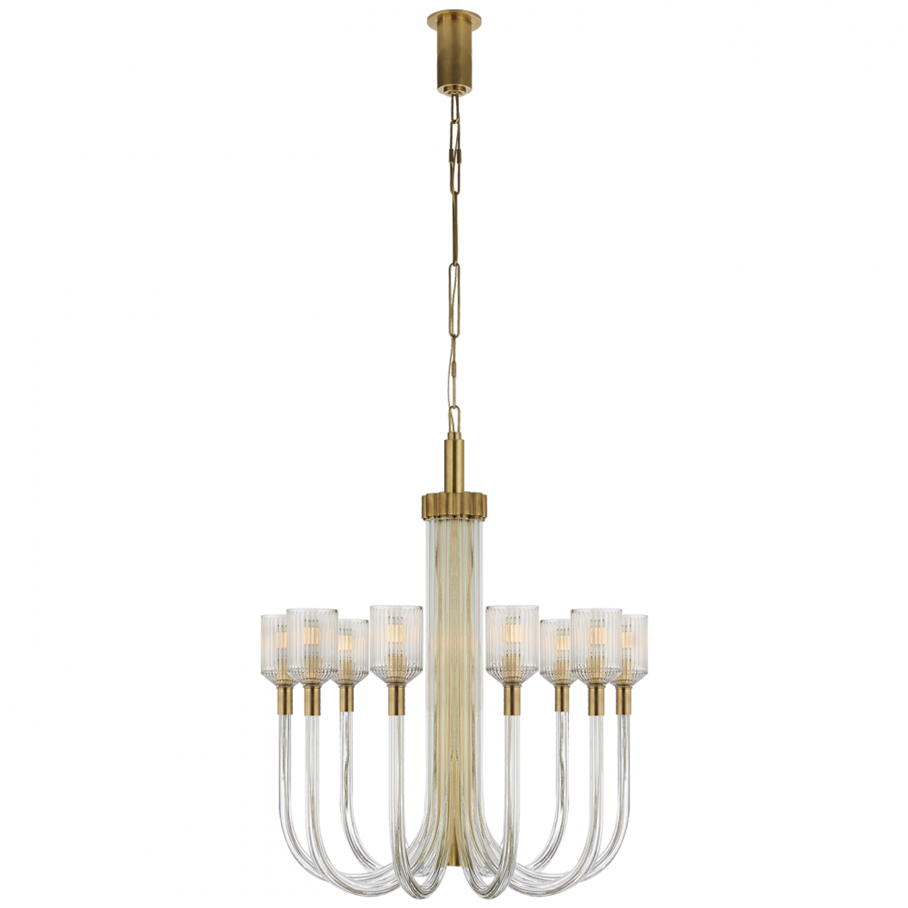 Boasting artisanal ribbed glass, the Reverie by Kelly Wearstler showcases gracefully sweeping architecture and classic elegance. Featuring curved arms holding candelabra bulbs, fluted glass shades and delicate metal details, the sconces and chandeliers will add a chic and elevated touch to interior spaces.