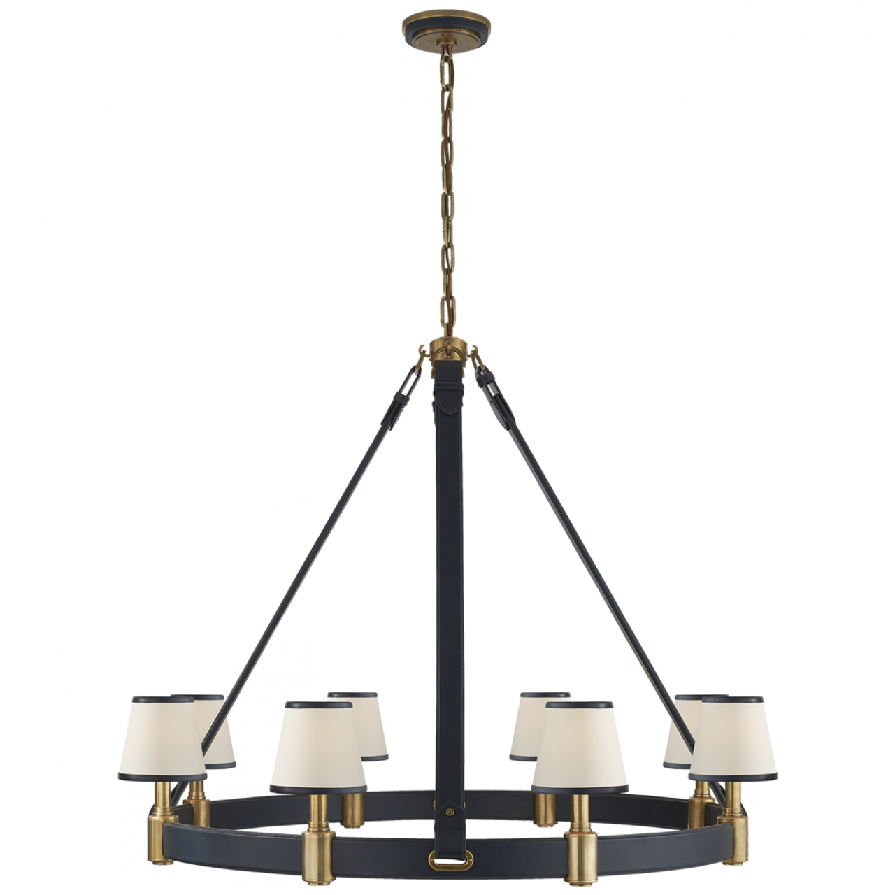 Riley Large Ring Chandelier - Natural Brass and Navy Leather