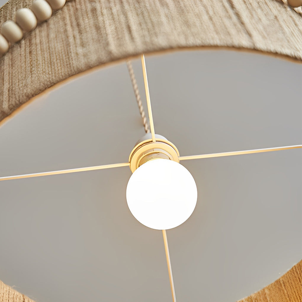Round Twine Rope Wood Beads Tassels Boho Style Chandelier Pendant Lamp