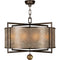 Pendant with warm translucent mica shade and metal frames. Features unique hand blown glass drop. Includes 6" custom rectangular chain & decorative canopy. Available in Silver and Bronze.