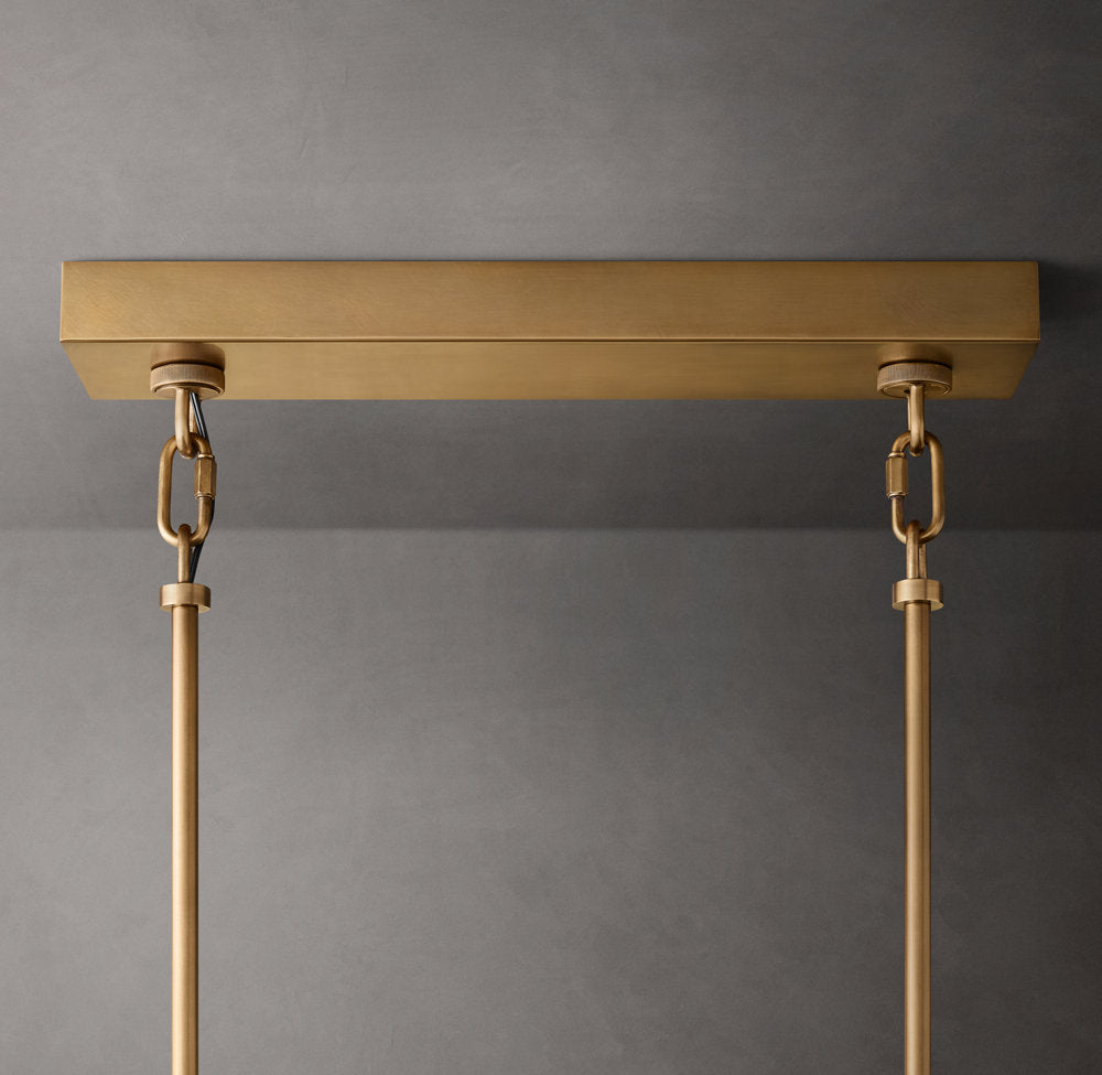 • Ceiling canopy and rods are crafted of dye-cast brass for Lacquered Burnished Brass or plated steel for Satin Nickel