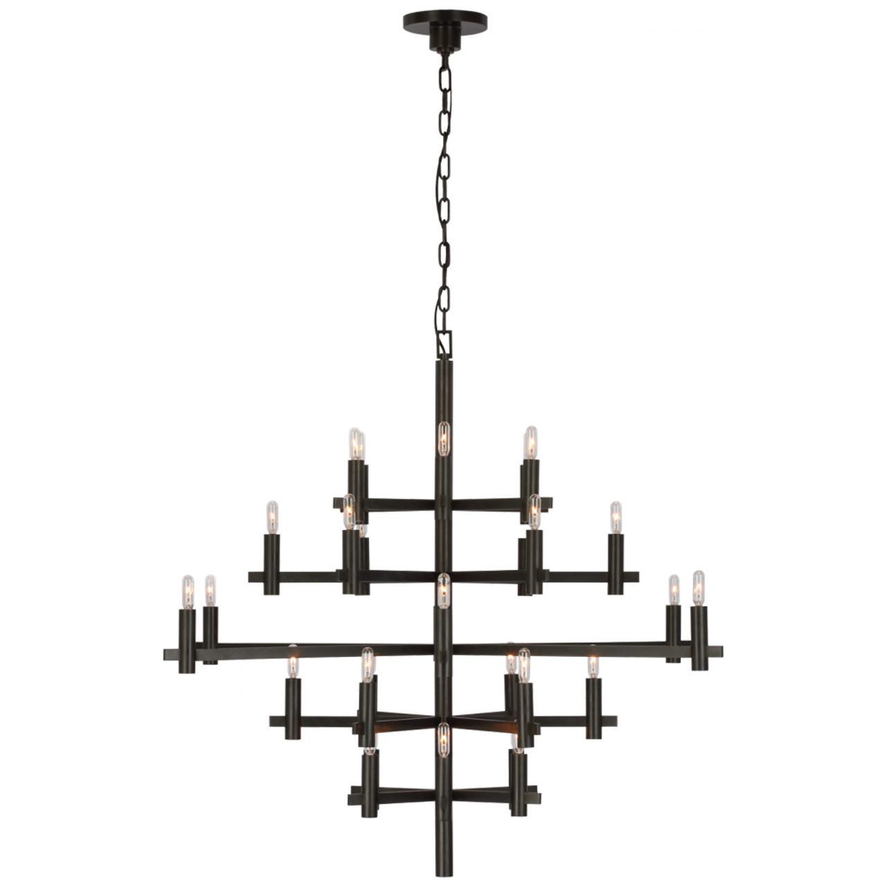 The Sonnet Large Chandelier by Visual Comfort Signature, designed by Chapman & Myers, is a striking lighting fixture that blends contemporary design with classic elegance. Its bold, sculptural frame features carefully arranged light sources that create a captivating ambiance, perfect for larger spaces like dining rooms or foyers. The Sonnet Large Chandelier adds a sophisticated focal point and luxurious glow, elevating any interior with its refined beauty.