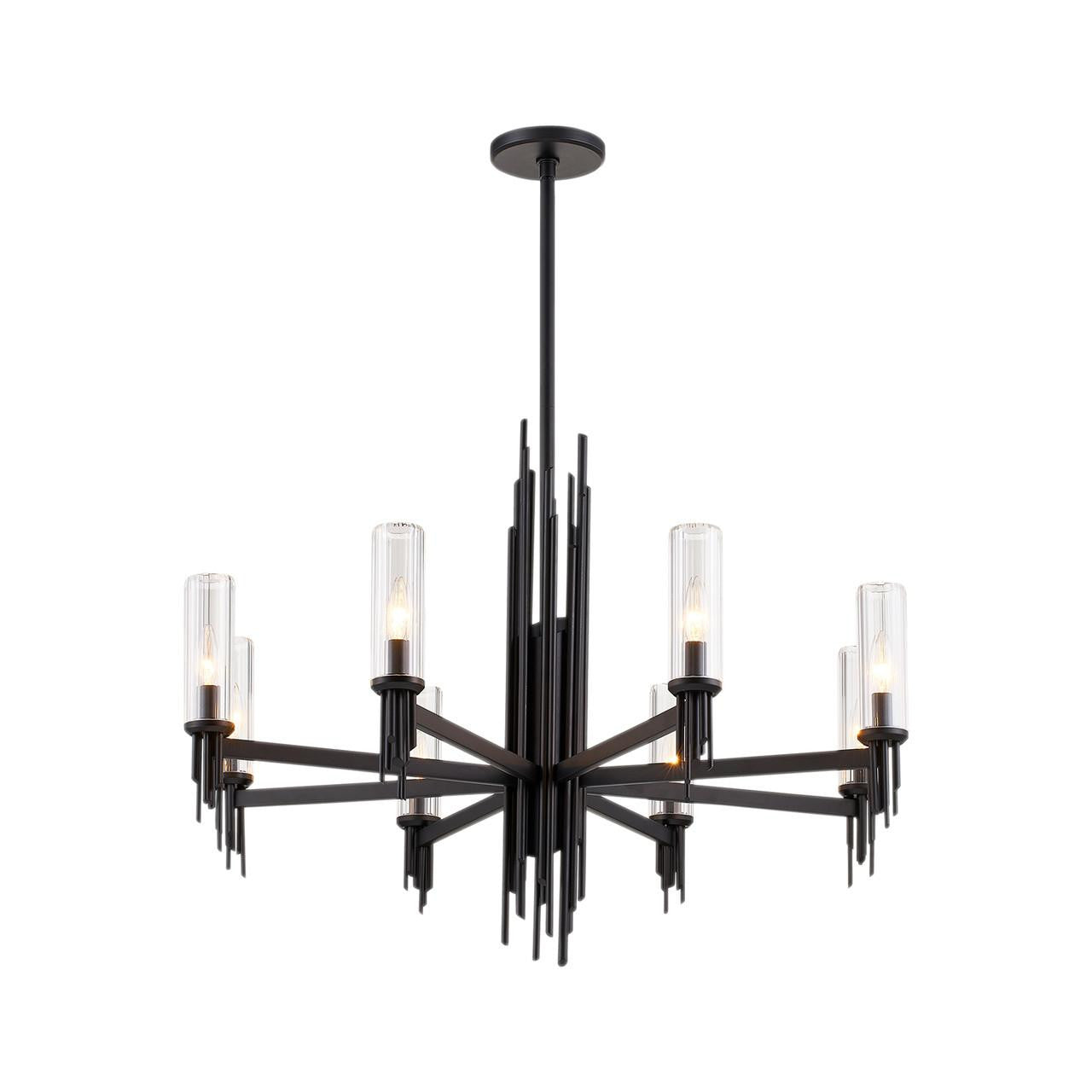Inspired by the resurgence of brutalist art and architecture, the Torres collection makes a stark yet stunning statement. Elegantly forged metalwork defines this collection. The Torres can be adorned with stunning ribbed crystal shades, or it can stand alone for a boost of modern flair.