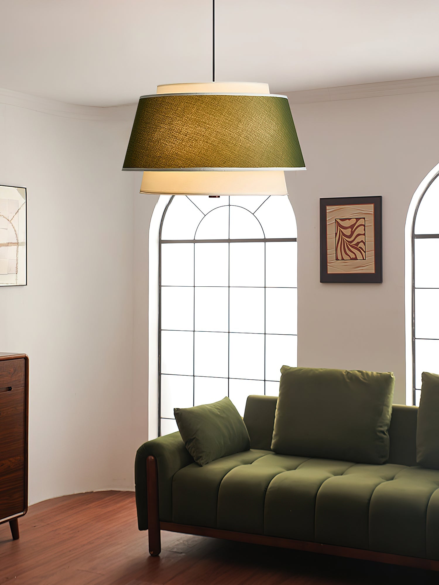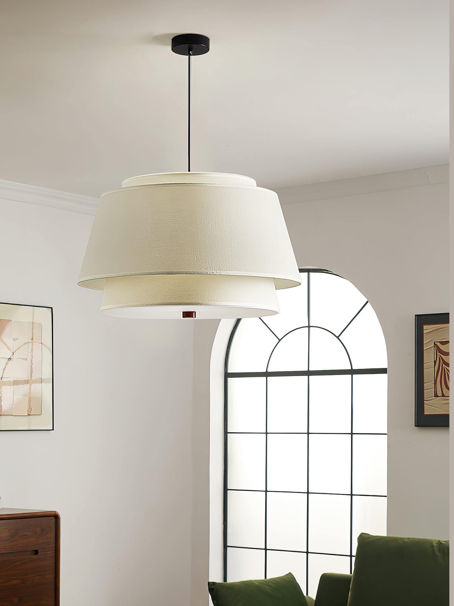 The Verdura Drum Pendant Light from yovinolight features a distinctive double-layered drum shade design that offers both depth and visual interest. Its clean, structured form diffuses light evenly, creating a warm and welcoming ambiance in any space. Suspended by a slim cord, this pendant embodies a refined balance of modern lines and timeless simplicity, making it an ideal choice for dining areas, kitchens, or living rooms seeking understated sophistication.