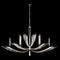 Oblong chandelier featuring graceful sweeps of tapered beveled crystals precisely set in metal wings in an airy platinized silver leaf finish. Ships standard with six 8" inch links.
