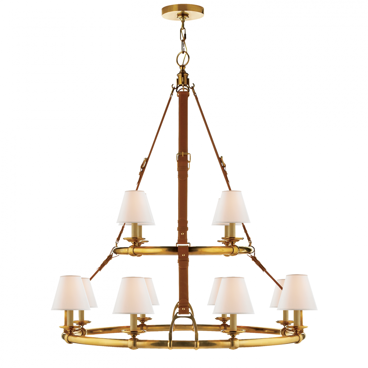 The Westbury by Ralph Lauren offers equestrian elegance for a variety of spaces. Stirrup silhouettes in polished nickel or antiqued brass are elegantly punctuated with leather detailing. Larger models will provide a focal point for dining rooms or entryways, and smaller pieces in multiples will illuminate hallways or great rooms.