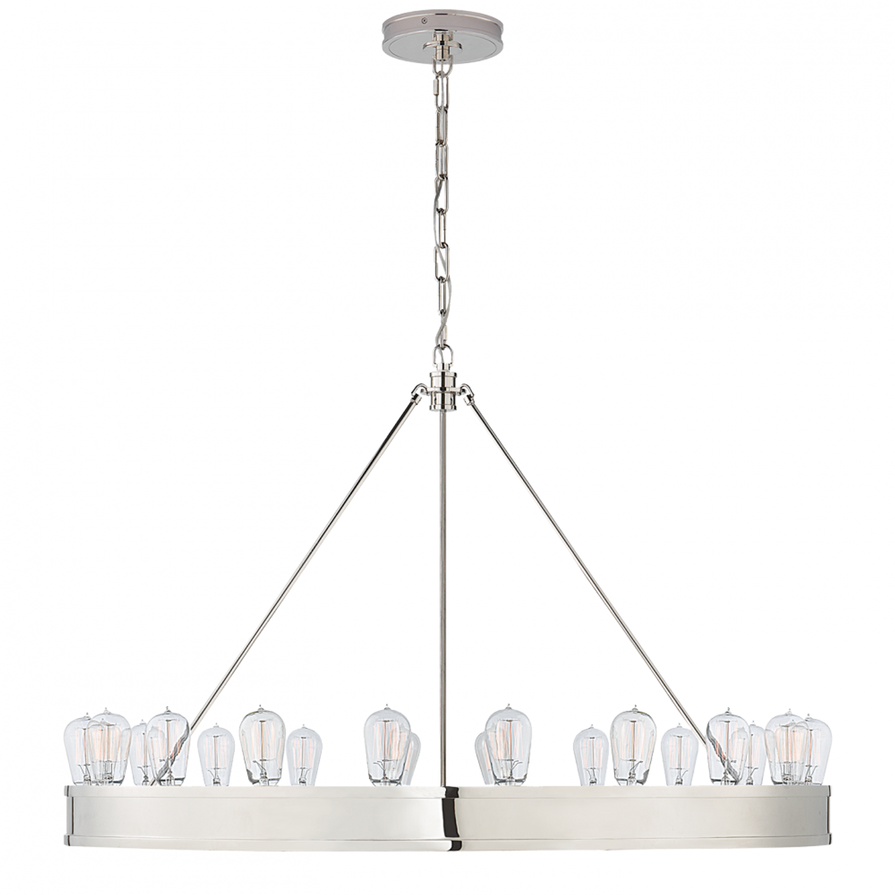 The Westbury by Ralph Lauren offers equestrian elegance for a variety of spaces. Stirrup silhouettes in polished nickel or antiqued brass are elegantly punctuated with leather detailing. Larger models will provide a focal point for dining rooms or entryways, and smaller pieces in multiples will illuminate hallways or great rooms.