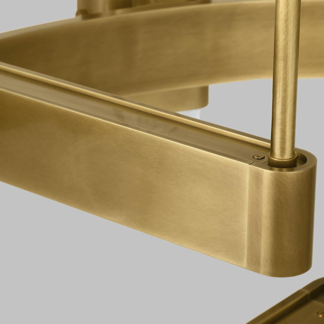 The Wythe Large Chandelier by AvroKO for Tech Lighting presents a strong impression with smooth diffusing light in its most honest and simplest form. It is created from the marriage of industrial elements and the raw natural expression of glass. The cylindrical brass structure holds cast glass that is lit to highlight the natural fissures and imperfections from the casting process. This fixture proves its distinction over time, aging with elegance and becoming unified with the place it intends to call home.